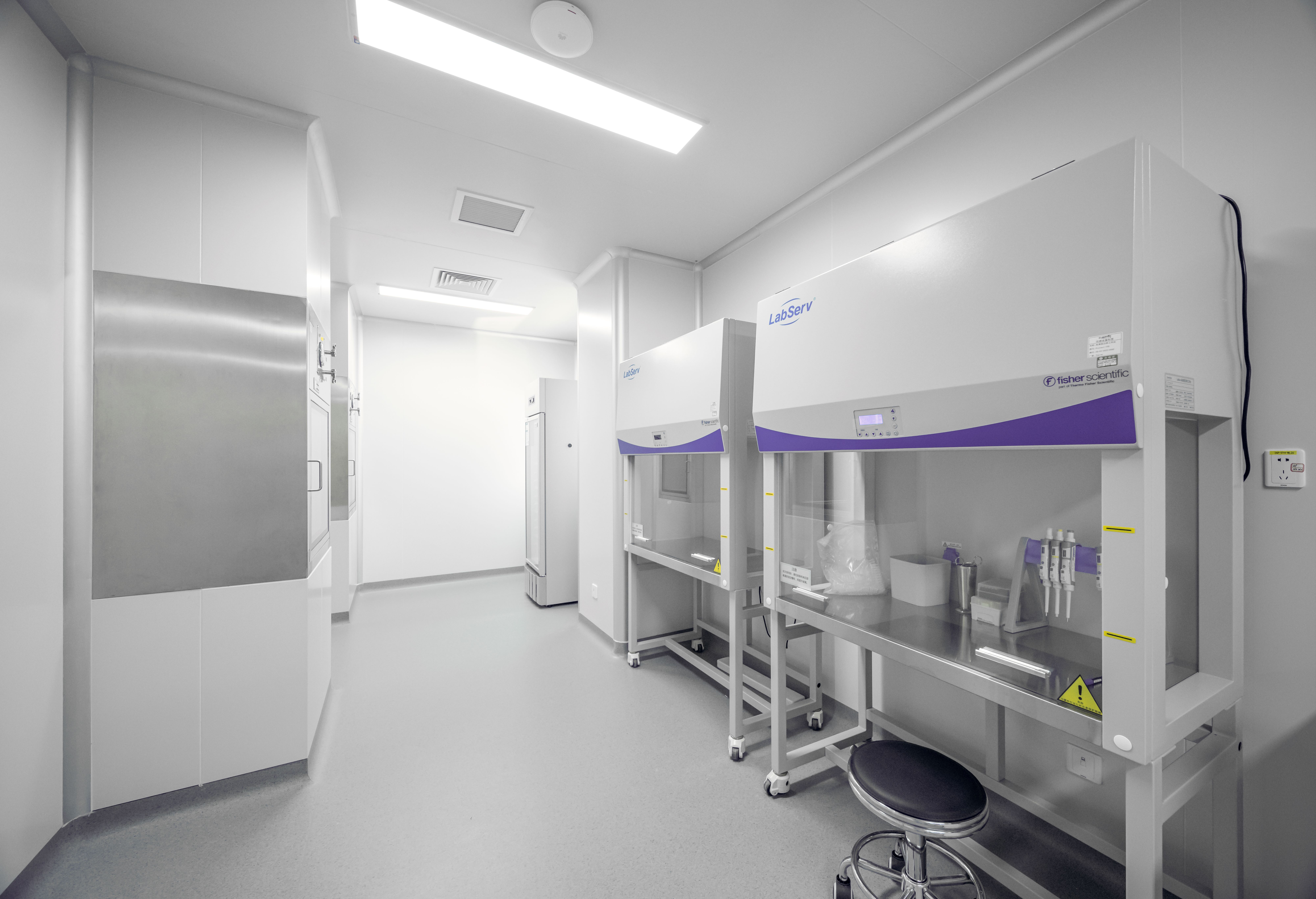 The cell culture laboratory is divided into two areas: the cell potency testing area and the positive control testing area. It is equipped with a dedicated full-exhaust HVAC system and contains B2 biosafety cabinets. The laboratory has completed registration to meet P2 biosafety laboratory protective standards. This area can be used for cell killing experiments, cell secretion factor detection, replication lentivirus detection, virus infection titer detection, etc.